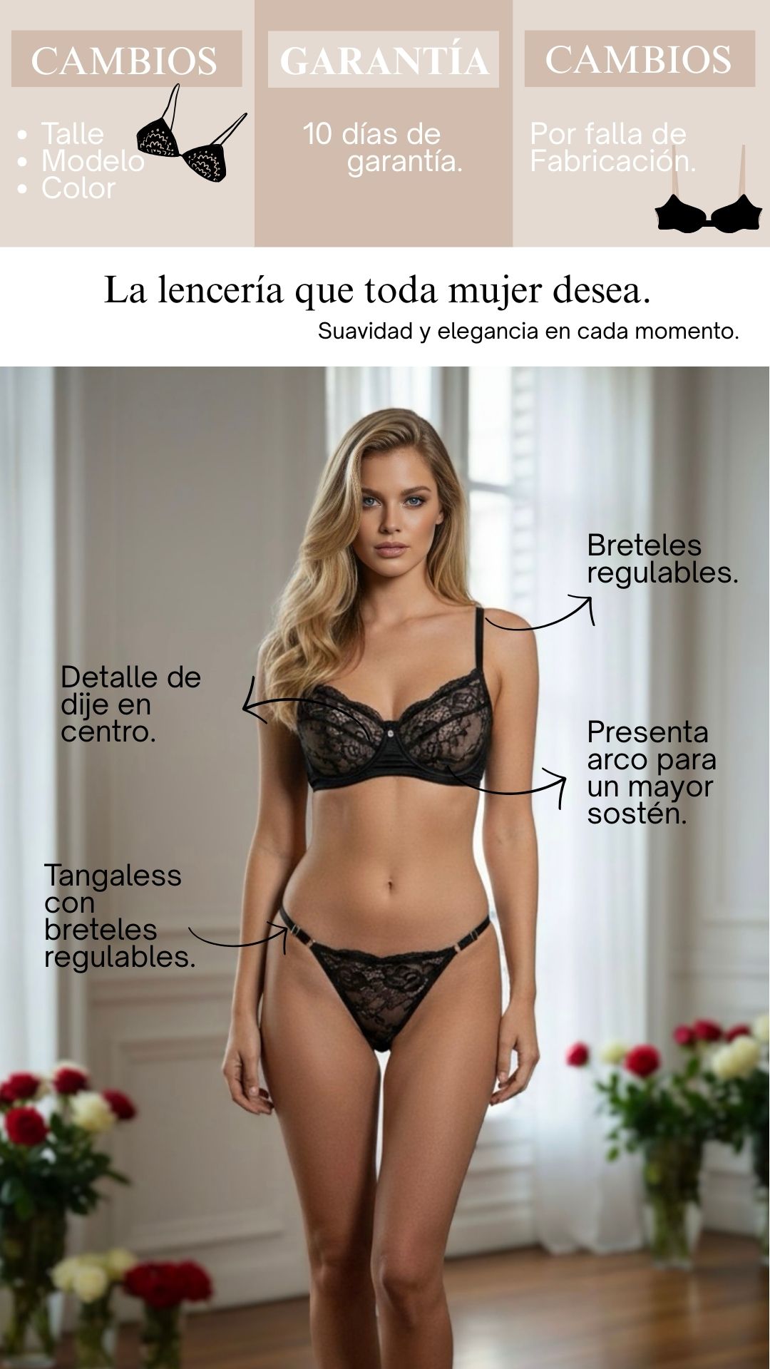 Delicado, provocador y absolutamente femenino. Roxale fue creado para elevar tu sensualidad con un diseño que enamora en cada detalle.
