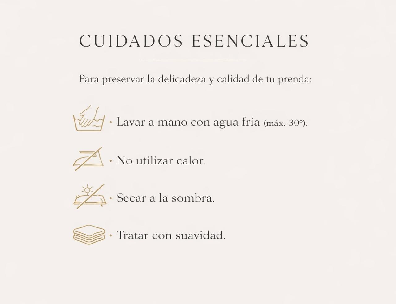 Lavado a mano con agua fría y jabón neutro. No usar secadora. Secar a la sombra para cuidar el encaje y la estructura del top.